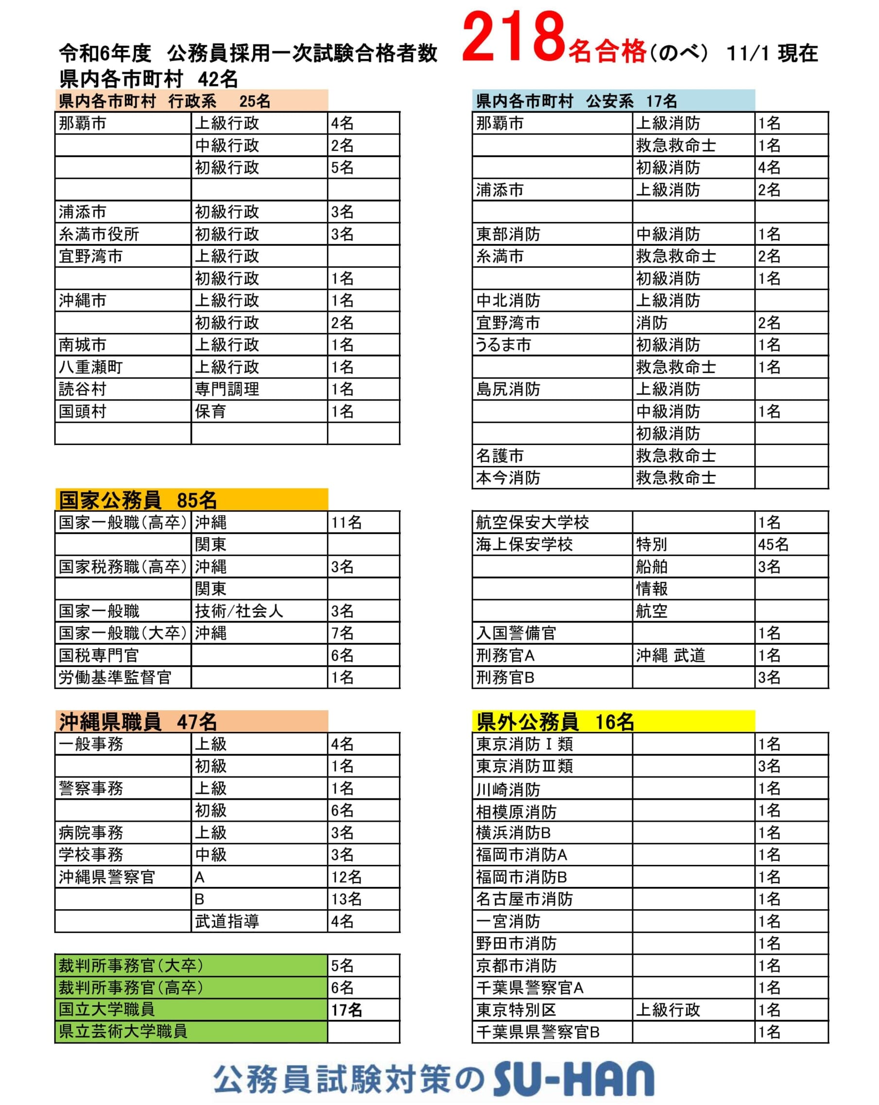 国家一般職 沖縄 11名